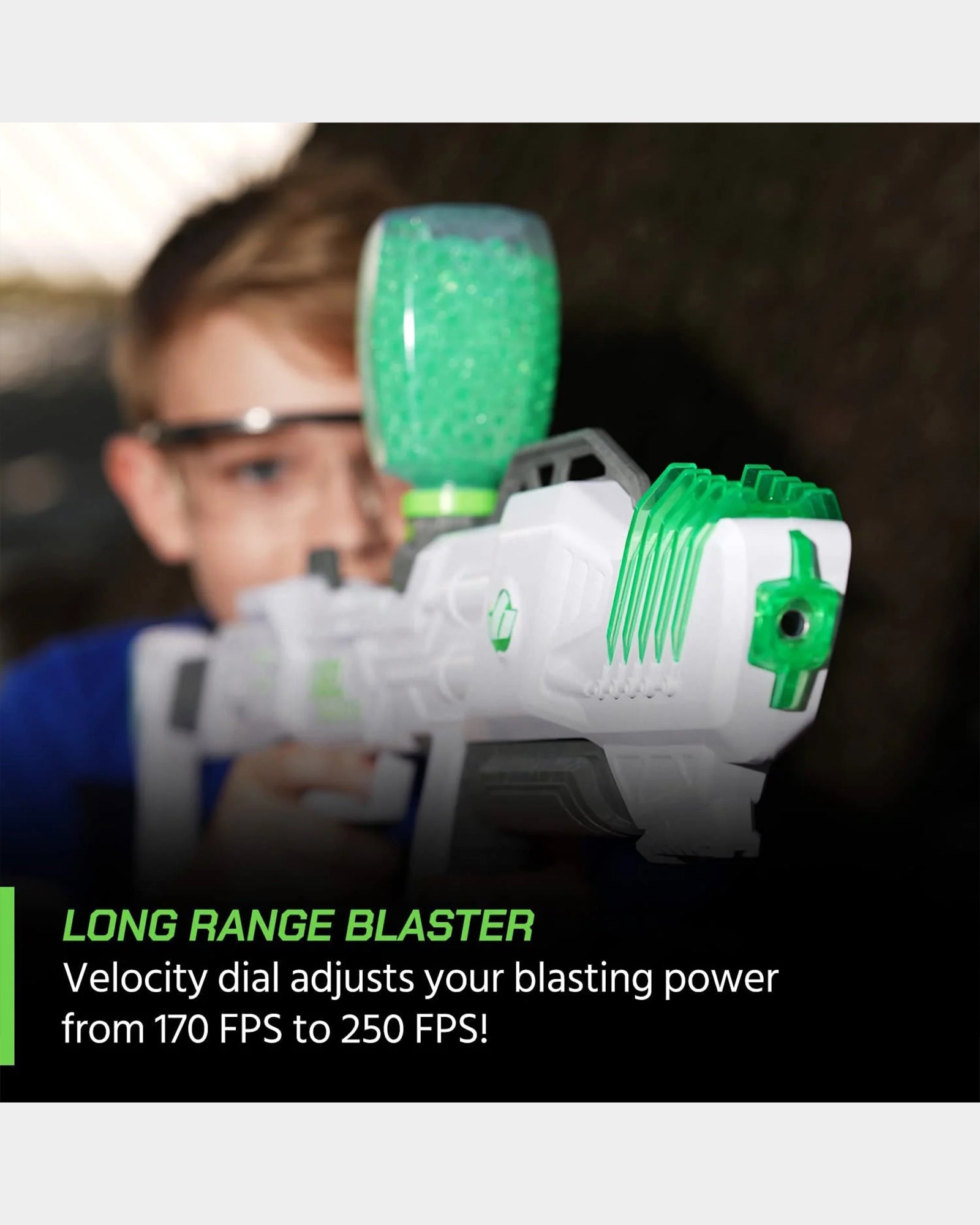 NEW LONG RANGE BLASTER:Surge XL is the next generation of blasters from the Gel Blaster team. Our newest addition is the most powerful blaster in our lineup! Comes with a velocity dial which adjusts blaster power from 170 to an astonishing 250 feet per second.