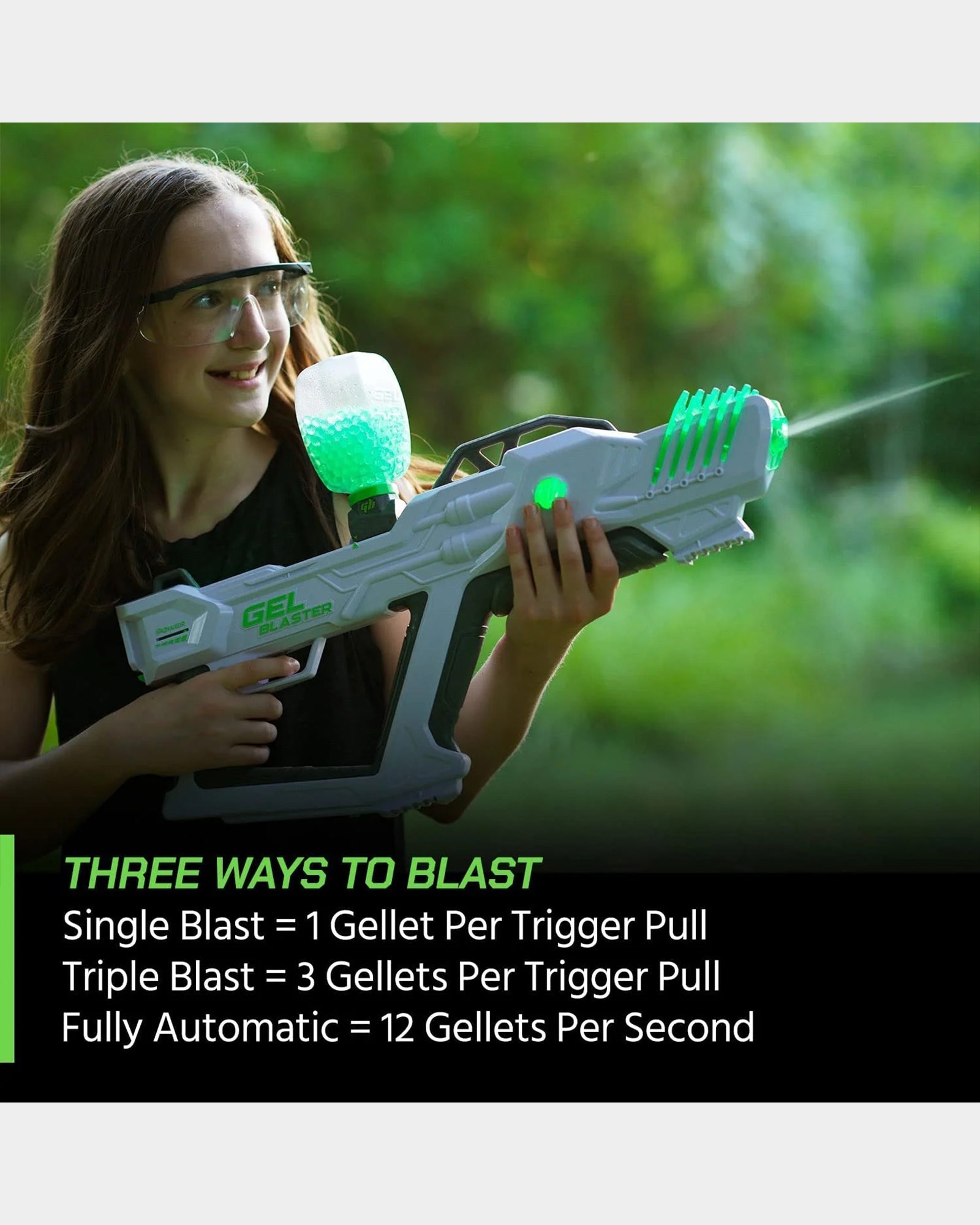 3 WAYS TO BLAST:Features 3 blasting modes, including full auto which launches up to 12 gellets per second. Also introducing our first ever burst fire mode. The three round burst is a game change when it comes to long range blasting and accuracy.
