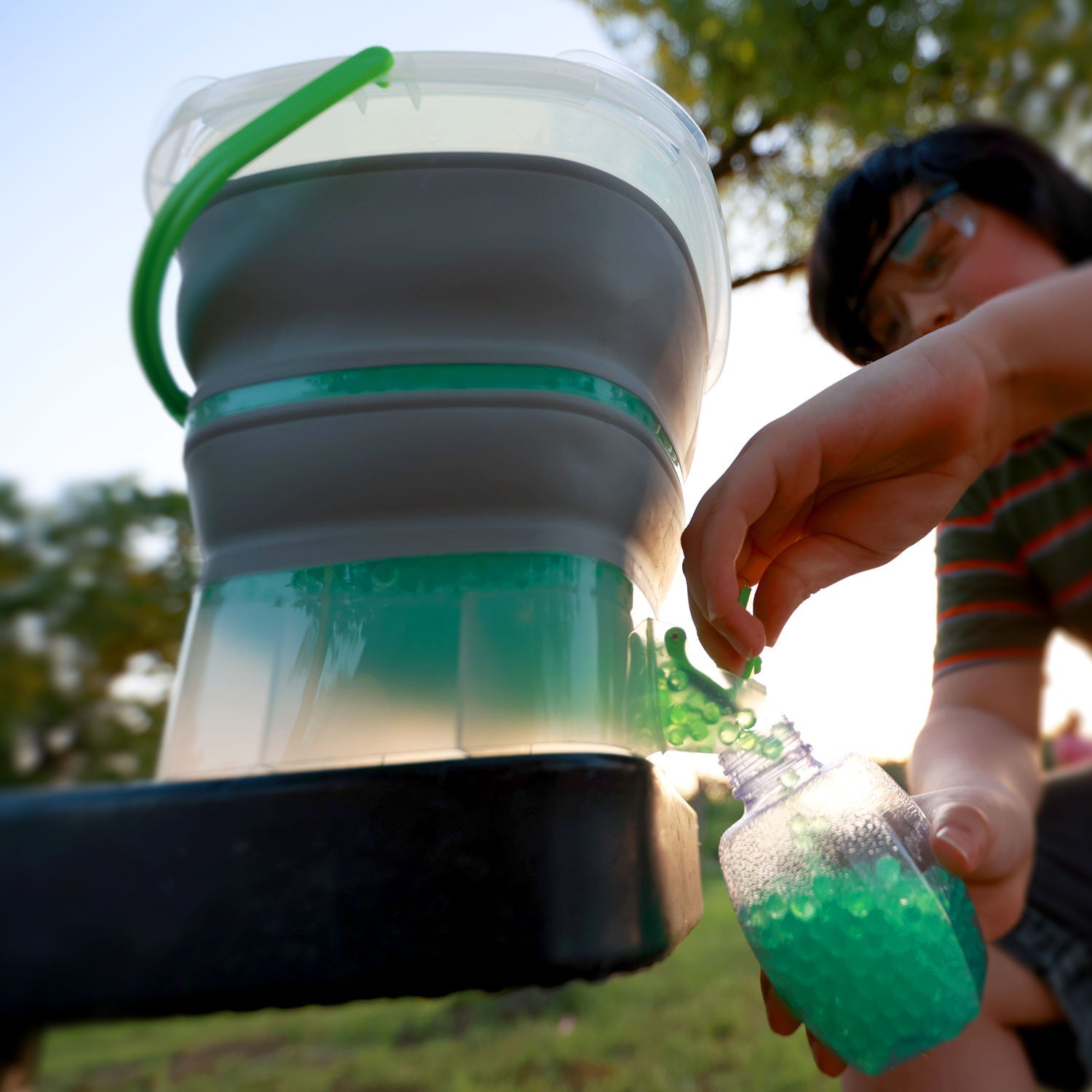 Gellet® Depot acts as your home base for reloading and jumping back into the battle. Gellets® last indefinitely when dehydrated, and up to three months when submerged in water. Gel Blaster Gellets expand 10x their size when fully hydrated. When you're ready to play, use the built in strainer to remove excess water and you're back in the action!